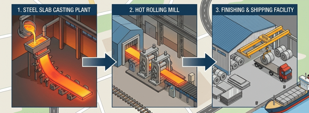 In addition, materials often move physically between plants as part of the same value chain. A slab may be cast in one location, rolled in another, and finished or shipped from a third. Maintaining consistent tracking, genealogy, and quality context across these transitions is non-trivial.